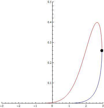 http://www.wolframalpha.com/input/?i=+x+=(t+2)/(1+e^(t-r)),+y=(e^(-t^2/2))/sqrt(2*pi)