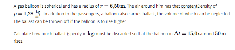 You begin by calculating the volume of the balloon and arrive at 1150 m3.
