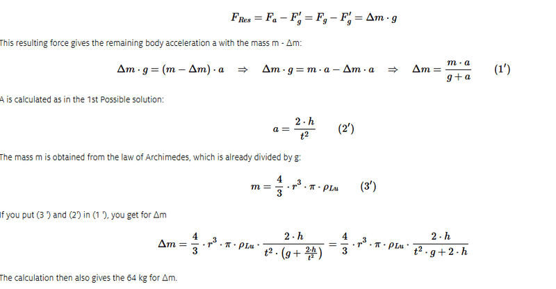 By contrast, the net buoyant force from 64 kg mass under one g is about 640 N.