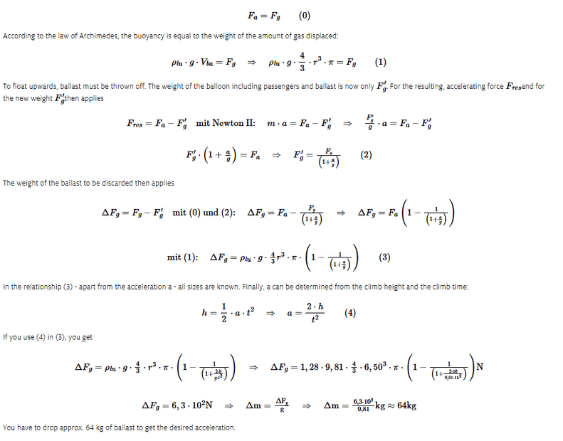 - what is the initial mass (or weight) of the balloon+passengers+ballast?