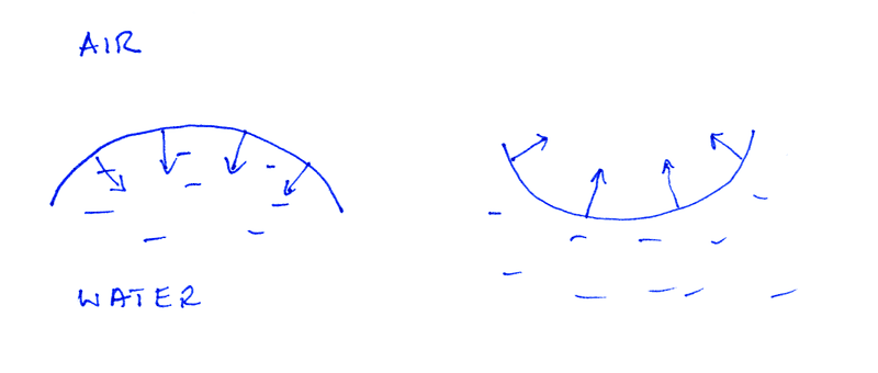 - Some participants explain that surface tension behaves similarly to a balloon, where the surface "wants" to minimize its area, leading to a compressive force on the air inside the alveoli.