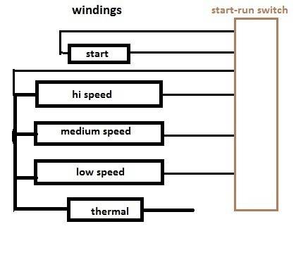 With your ohmmeter you can now verify that all 3 run windings have a common connection to the white wire exiting the thermal device.