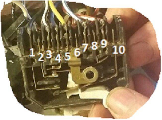 So power to start winding comes in on 10, goes through contact up to 1, and into start winding's black wire,