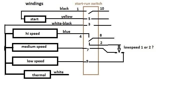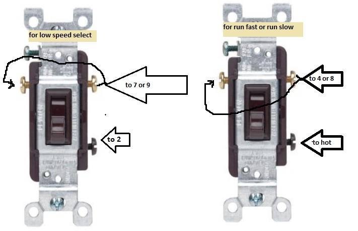 here's my 3 speed Whirlpool, one switch is ON OFF, other is fast-slow. I only wired up two of the 3 speeds.