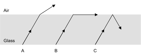 Answer: 15 mm - Transition from glass to air, make a sketch of the light ray.