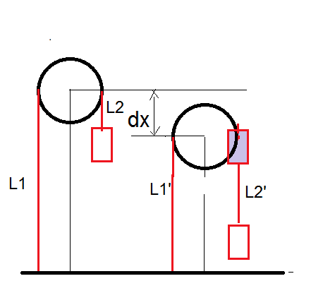 Newton's law for pulley with block 2: