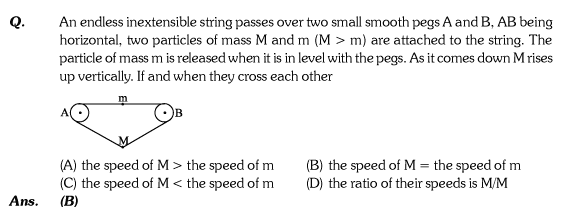 - Participants discuss the relationship between the tensions in the strings and the angles formed as the masses cross each other. There is an exploration of the work done by tension and its implications on the motion of the masses. Questions arise regarding the justification of the assumption that the rate of work done by tension is zero at the instant the masses pass each other.