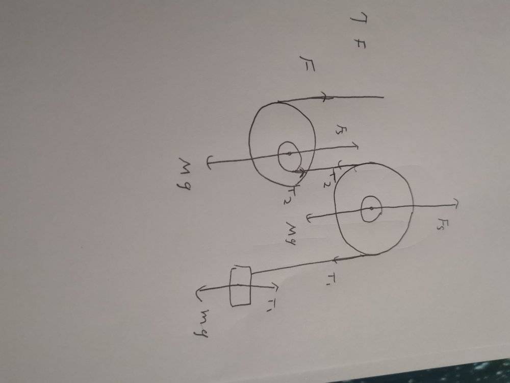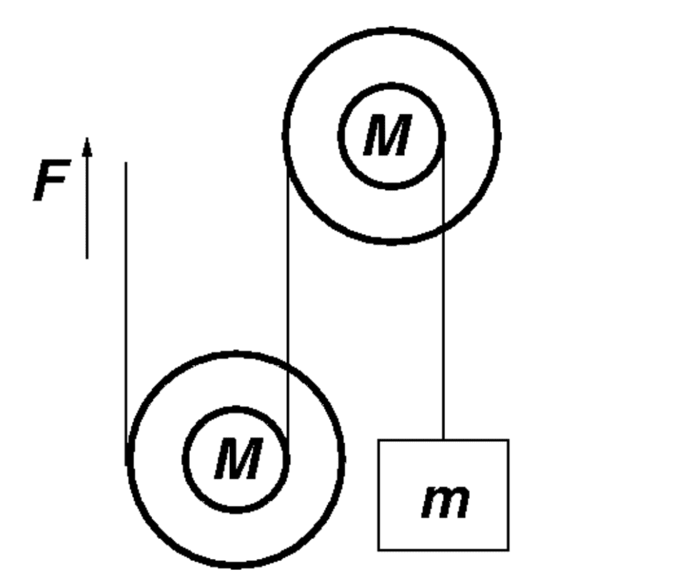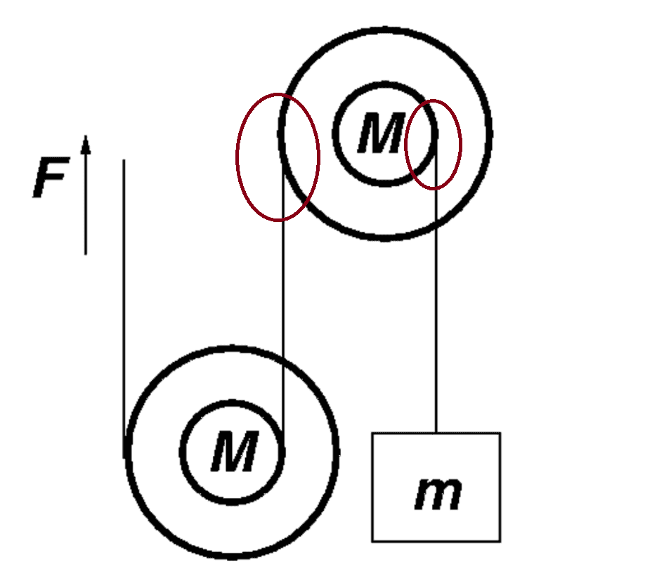 - Each pulley is replaced by a system of two concentric disks, which are fastened