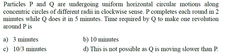 Participants note that the problem lacks specific information about the radii of the circular paths, which complicates the ability to reach a definitive conclusion. There is also mention of potential misinterpretations of the data provided.