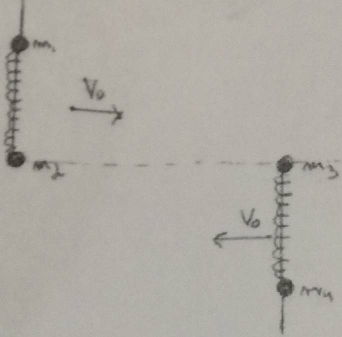 - The picture shows two rods of negligible mass and length ##d_0##. Both of them have a ball of mass ##m## in each end and a spring of natural length ##d_0## and constant ##k##.