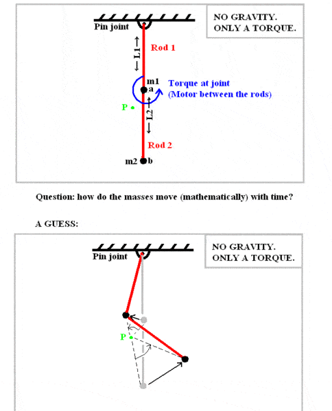 This is a general situation that I'm trying to figure out. Say there are two massless rods connected with a revolute joint, and one of the rods' other free end is connected to the wall with a free pin joint. There are two point masses in the system (see attachment), so the system is in a double pendulum configuration.