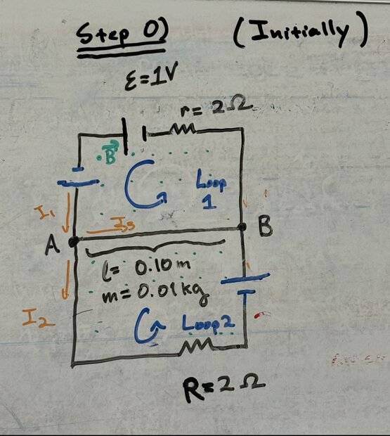 - My confusion lies in the fact that once the bar starts moving is how do we apply KVL and find the current in ##\text{AB}## after the bar starts moving?