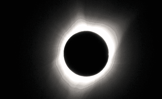 TOTALITY. The Sun looked like a black disk with a thick white ring around it. The disk being the Moon and the ring being the corona. The sky looked as dark as dark twilight, even if not as dark as late night.