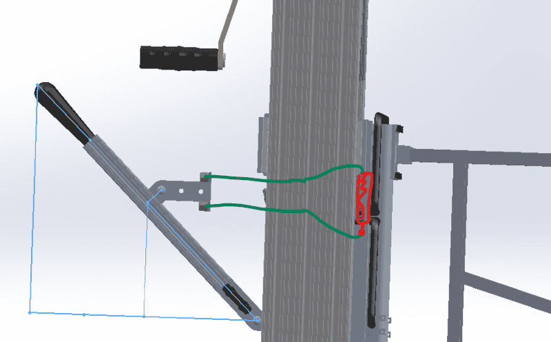- Calculated handle bar pulling force to be significantly lower than what I measured in real life; This is attached to 2 brake cables, each connected to one end of a gas piston (tension).