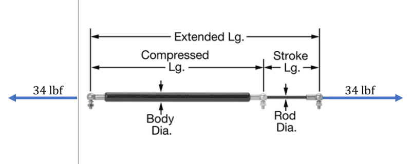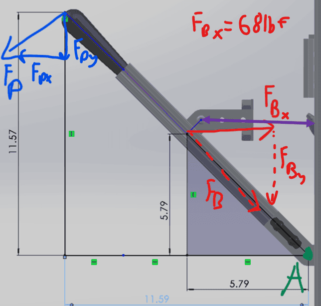 3. The Fp value is wildly wrong. It's a long story but TL;DR That force is coming from 2 different brake cables, attached to both ends of a tension gas piston (rated at 20lbf compression, 34lbf extension). The way I got 40lbf is that when the gas piston is not displaced, the force is around 20lbf, and multiply that by 2 since there's two brake cables attached to both ends of the piston, so the lever at the mounting point will see 40lbf. Now as I understand the compression force increases as displacement increases like a spring but even when I change the total Fp value to be 68lbf, it's no where near what I measured in real life.
