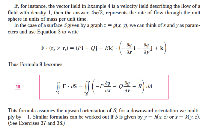The discussion revolves around understanding the flux of vector fields, specifically in relation to the equations used for calculating flux over a surface defined by a function of two variables. Participants are examining the differences in formulas and the implications of normal vector directions in their calculations.