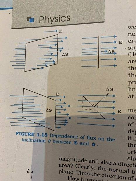 is a measure of “number of field lines” passing through S. I put this in quotes because of course we can only draw a representative sample of field lines. The total number would be infinite. But for a given sampling rate the flux is proportional to the number of field lines drawn, because the field strength, remember is proportional to the density of field lines(the number per unit area), and hence E.da is proportional to the number of field lines passing through the infinitesimal area da.