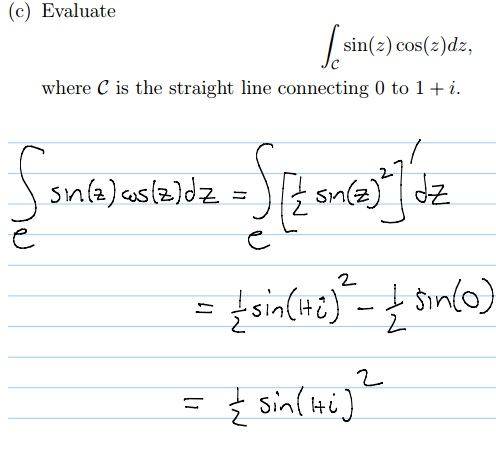 - A later reply mentions that the function $\frac{1}{2}\sin(2z)$ is analytic over the entire complex plane, suggesting that the line integral is path-independent, but does not resolve the initial confusion about the expression.