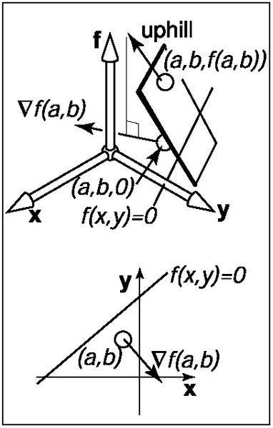 - Another participant introduces the idea that the gradient can be expressed in terms of directional derivatives, indicating that the gradient is perpendicular to level curves.