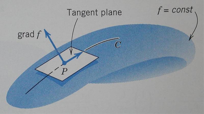 Participants express differing views on the relationship between the gradient and the normal vector of the plane, indicating that the discussion remains unresolved with multiple competing interpretations presented.
