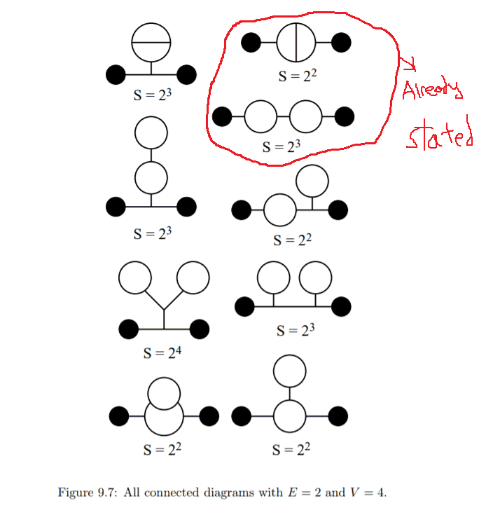 Good! One comment: in particle physics, people often omit the tadpoles. The reason for this is that they always disappear once one renormalizes. The reason is that the integrals over the loop momenta (that flow in the tadpoles) do not contain the external momenta. In the examples here, we then get that the tadpoles are just (divergent ) factors multiplying the two point functions, factors which are independent of the external momenta. After renormalization, these terms get canceled completely. However, when working in condensed matter systems (and at T not equal to zero), these tadpoles do not cancel and are therefore important.JD_PM said:Well, once we include tadpoles, ##7## more contributions to ##\mathcal{O}(\lambda^4)## arise (just as one more arose for ##\mathcal{O}(\lambda^2)##). Source: Srednicki QFT, chapter 9