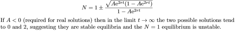 ## N=1 \pm \frac{\sqrt{Ae^{2rt}}}{\sqrt{1-Ae^{2rt}}} ##