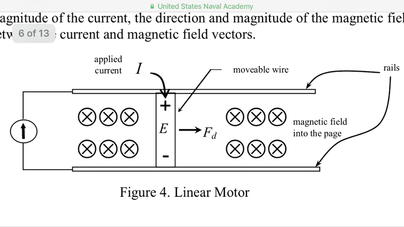 I attached an image of a basic linear motor. I'm a little confused if I use the right hand rule or left hand rule. I did it both ways and I think the left hand rule is the only rule that allows for a force being applied to the right. I assume the current is going down rather than upward like what it says in the left corner since the current moves clockwise.