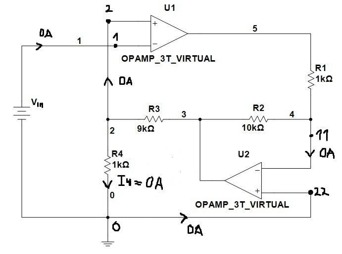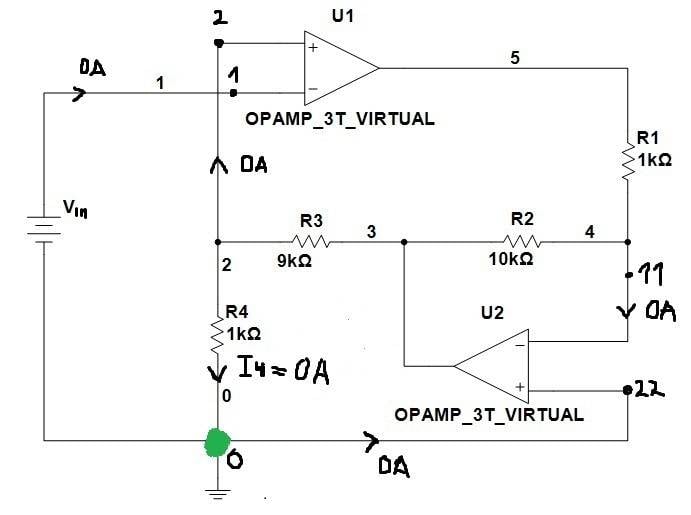 - One participant asserts that for ideal op-amps, input currents are zero, leading to the conclusion that I4 must also be zero based on KCL.