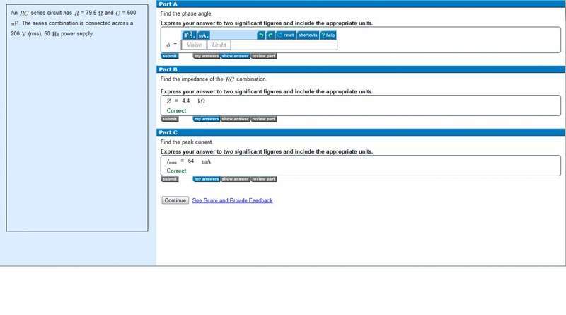 Obviously I have B and C correct but for a the only thing I can find is tan(phi)=XL-Xc/R