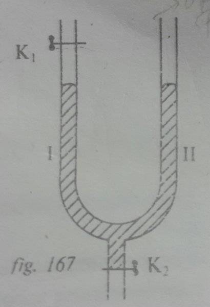 c) When the sealed air has reached a length of 19 cm, this valve K2 is closed.