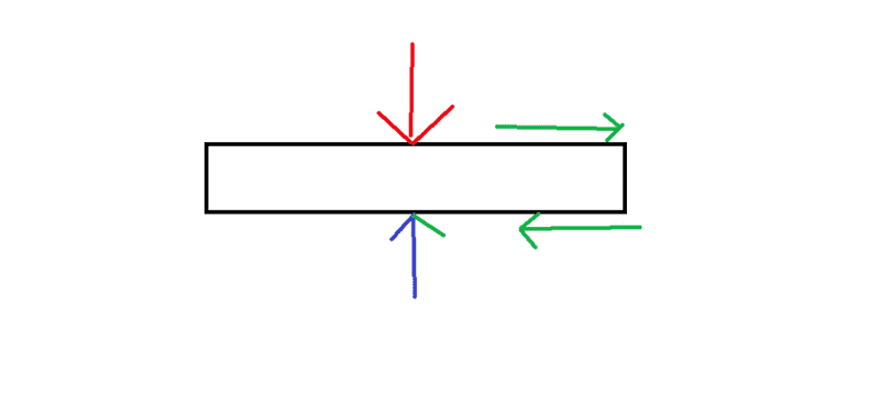 The discussion centers on understanding reaction forces in pure bending scenarios for structural resistance. Participants clarify that to resist bending, a longitudinal normal force acts against the applied transverse load, while the author incorrectly refers to this as a longitudinal shear force. The correct setup involves a beam fixed at one end with a transverse load applied at the opposite end, necessitating both an upward force and a torque at the fixed end to maintain equilibrium. The torque is transmitted through longitudinal shear forces, which are essential for balancing the moment caused by the load.