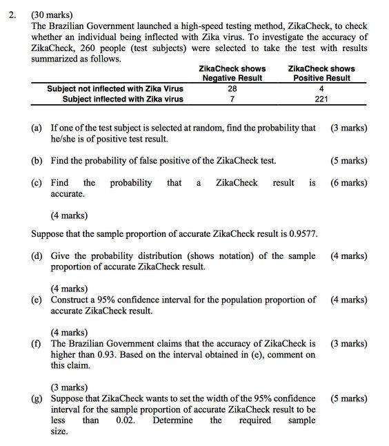 Then for 2d, I have no idea what to do. Am i suppose to draw one of those probability distribution table? And what does it mean sample proportion of accurate ZikaCheck result?