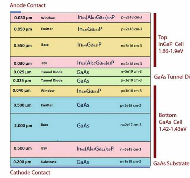 - A later reply clarifies that the solar cell referenced is a multi-junction solar cell, explaining the distinction between the InGaP and GaAs cells involved.