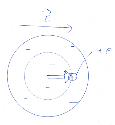 Electric force on nucleus from external field must balance attraction force from electron cloud and electric force from external field.