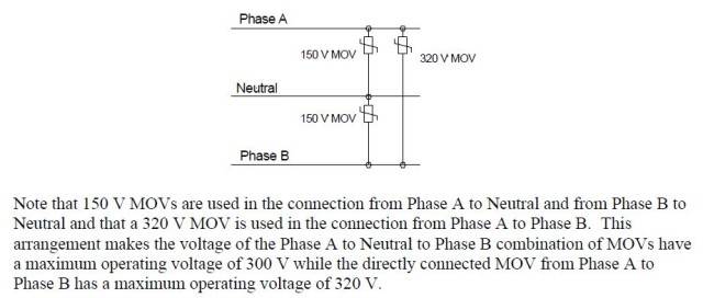 if there was no discrete line to line MOV used.. what would be the behavior of the 2 elements MOV in series (the Phase A to ground and Phase B to ground MOV).. would it behave less than discrete line to line or similar in shunting the current? What do you think?