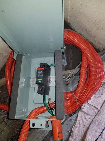 Type 1 – One port, permanently connected SPDs, except for watt-hour meter socket enclosures, intended for installation between the secondary of the service transformer and the line side of the service equipment overcurrent device, as well as the load side, including watt-hour meter socket enclosures and Molded Case SPDs intended to be installed without an external overcurrent protective device. Type 1 SPDs for use in PV systems can be connected between the PV array and the main service disconnect.