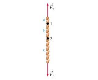 Consider the three sections of rope labeled a, b, and c in the figure.