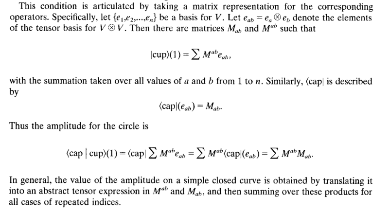 Currently, I am looking at the section on quantum link invariants, and specifically the simple case of a trivial knot in a spacetime diagram.