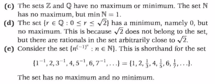 I'm confused as to why in the example (e), the set does not have a minimum.