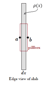 But we know what ##\rho dx## is because we can apply Gauss's law to the slab. If we take ##(1)## and apply it to the slab we get