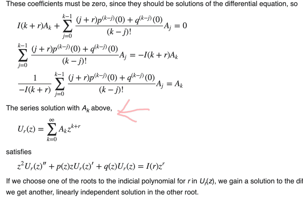 Upon setting ##y = \sum_{k=0}^\infty a_{k}z^{k+c}##, we have:
