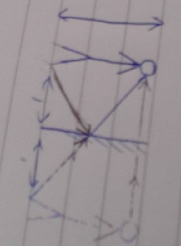 you will see the reflected ray of light coming from the feet, emerge halfway up the mirror approximately en route to the real object (the man).