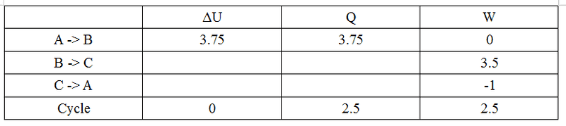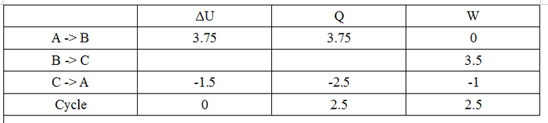 ΔU for B -> C: 3.75 + (-1.5) + x = 0, x = -2.25
