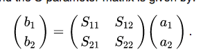The discussion centers on the S parameter matrix for perfect lossless transmission lines, specifically focusing on the S(21) parameter. It is established that S(21) = b2/a1, provided that a2 = 0, which holds true even in complex networks. The conversation emphasizes the importance of understanding the relationship between a1 and b2, particularly in terms of magnitude and potential phase differences in AC networks. The conclusion is that while S(21) can be complex, its magnitude is a critical aspect to consider in both DC and AC scenarios.