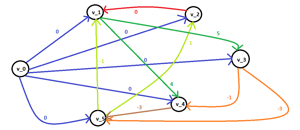 At the graph of a system of difference constraints,we add an additional vertex $v_0$ and the edges $(v_0,v_1), (v_0,v_2), \dots, (v_0,v_n)$ with weight $0$.