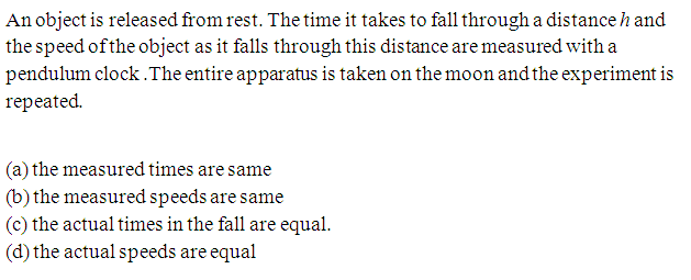 Taking the above two factors into account , Time taken by the object to fall by a distance h on moon as measured by pendulum clock = t . Thus option a) is correct .