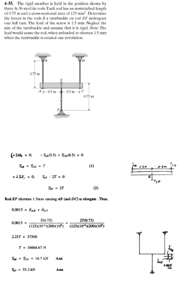 - This participant notes that the shortening of 1.5mm is divided among the rods, leading to equations that must satisfy static equilibrium conditions.