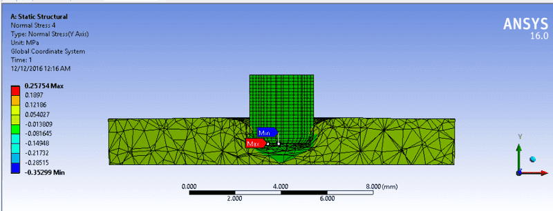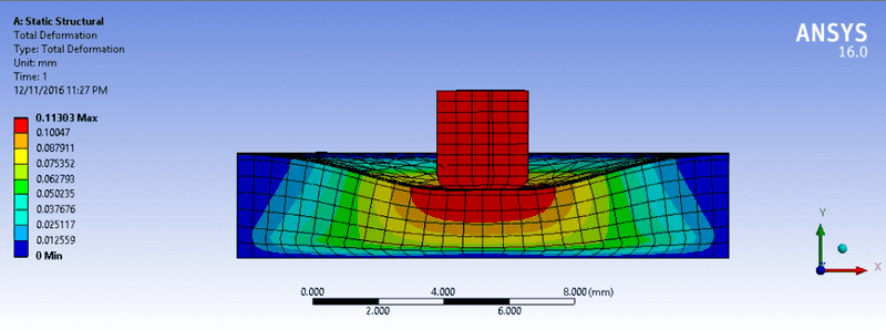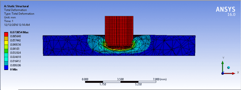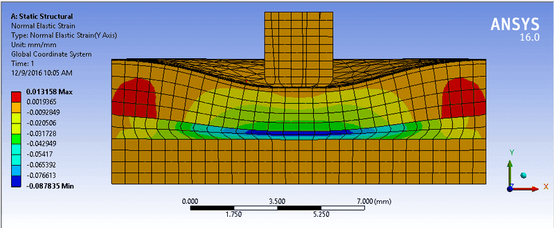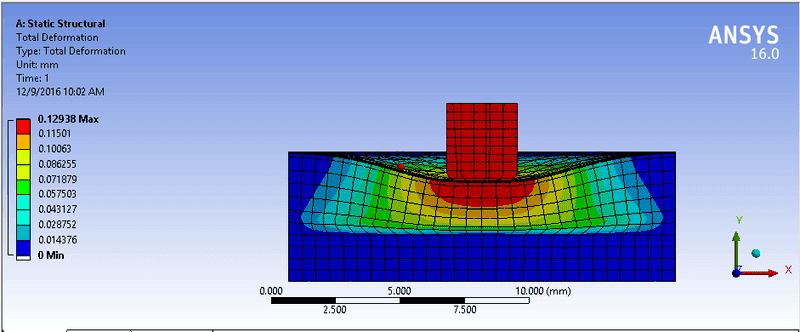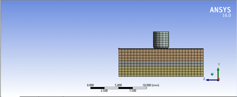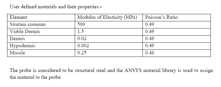 I have problem of finding the deformation of skin using a probe. I have identified the different layers of skin and made the model accordingly along with a probe in contact with the top layer of skin. The model is basically 15x15mm model with extrudes of different thickness for each layer.