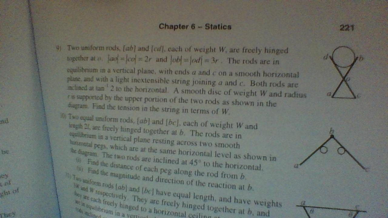 yes your diagram is right. i feel i am using the right technique but i am not getting the right answerskeeter said:not 100% sure this is it ... still pondering the hinge where the rods meet.