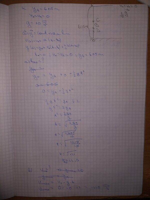 The discussion revolves around a problem in uniformly accelerated linear motion, specifically analyzing the motion of a small body released from a height of 605 meters under the influence of gravity, with a focus on calculating various distances and velocities at different time intervals.